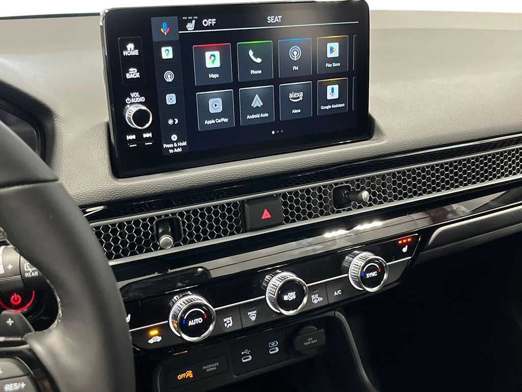 2026 Honda Civic Hybrid Sport Touring 4D Hatchback 2.0L I4 DOHC 16V eCVT Urban Gray Pearl Civic Hybrid Sport Touring, 4D Hatchback, 2.0L I4 DOHC 16V, eCVT, FWD, Urban Gray Pearl, Black w/Leather-Trimmed Seat Trim, 12 Speakers, 4-Wheel Disc Brakes, ABS brakes, Adaptive Cruise Control: Adaptive Cruise Control (ACC) with Low-Speed Follow, Air Conditioning, Alloy wheels, AM/FM radio, Apple CarPlay/Android Auto, Auto High-beam Headlights, Auto-dimming Rear-View mirror, Automatic temperature control, Blind Spot Information (BSI) System warning, Bose Premium Sound System, Brake assist, Bumpers: body-color, Compass, Delay-off headlights, Driver door bin, Driver vanity mirror, Dual front impact airbags, Dual front side impact airbags, Electronic Stability Control, Emergency communication system: HondaLink, Exterior Parking Camera Rear, Four wheel independent suspension, Front anti-roll bar, Front Bucket Seats, Front Center Armrest, Front dual zone A/C, Front reading lights, Fully automatic headlights, Heated door mirrors, Heated Front Bucket Seats, Heated front seats, Illuminated entry, Knee airbag, Lane departure: Lane Keeping Assist System (LKAS) active, Leather Shift Knob, Leather steering wheel, Leather-Trimmed Seat Trim, Low tire pressure warning, Navigation system: Google Maps, Occupant sensing airbag, Outside temperature display, Overhead airbag, Overhead console, Panic alarm, Passenger door bin, Passenger vanity mirror, Power door mirrors, Power driver seat, Power moonroof, Power passenger seat, Power steering, Power windows, Radio data system, Rain sensing wipers, Rear anti-roll bar, Rear seat center armrest, Rear side impact airbag, Rear window defroster, Rear window wiper, Remote keyless entry, Security system, Speed control, Speed-sensing steering, Split folding rear seat, Steering wheel mounted audio controls, Tachometer, Telescoping steering wheel, Tilt steering wheel, Traction control, Trip computer, Turn signal indicator mirrors, Variably intermittent wipers, Civic Hybrid Sport Touring, 4D Hatchback, 2.0L I4 DOHC 16V, eCVT, FWD, Urban Gray Pearl, Black w/Leather-Trimmed Seat Trim.