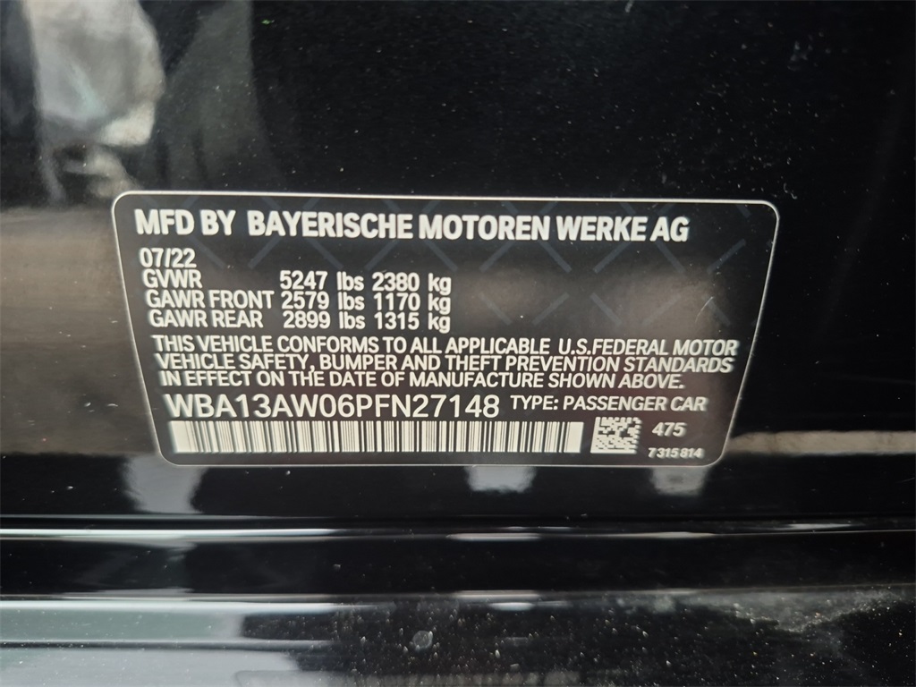 - VIN : WBA13AW06PFN27148