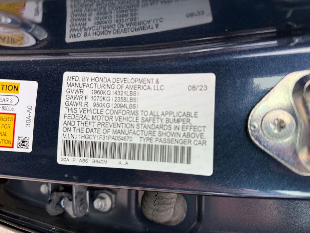 - VIN : 1HGCY1F31PA054670