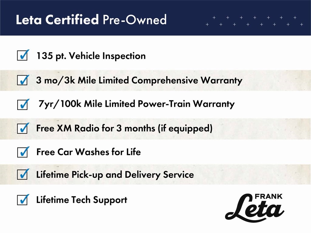 **Frank Leta Certified Used Vehicles Provide a 90 Day/3,000 Mile Limited Comprehensive Warranty and a 7 Year/100,000 Mile Limited Powertrain Warranty for Your Protection!** Price Includes $500 Finance Loyalty Coupon!!