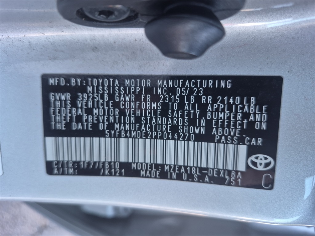 Just one prior owner! 2023 Toyota Corolla LE 4D Sedan 2.0L I4 DOHC 16V CVT Silver FWD 4-Wheel Disc Brakes, 6 Speakers, ABS brakes, Air Conditioning, AM/FM radio: SiriusXM, Auto High-beam Headlights, Automatic temperature control, Brake assist, Bumpers: body-color, Delay-off headlights, Driver door bin, Driver vanity mirror, Dual front impact airbags, Dual front side impact airbags, Electronic Stability Control, Emergency communication system: Safety Connect (up to 10-year trial subscription), Exterior Parking Camera Rear, Front anti-roll bar, Front Bucket Seats, Front Center Armrest, Front reading lights, Front wheel independent suspension, Fully automatic headlights, Illuminated entry, Knee airbag, Low tire pressure warning, Occupant sensing airbag, Outside temperature display, Overhead airbag, Panic alarm, Passenger door bin, Passenger vanity mirror, Power door mirrors, Power steering, Power windows, Premium Fabric Seat Trim, Radio data system, Radio: 8" Toyota Audio Multimedia, Rear anti-roll bar, Rear seat center armrest, Rear side impact airbag, Rear window defroster, Remote keyless entry, Speed control, Split folding rear seat, Steering wheel mounted audio controls, Tachometer, Telescoping steering wheel, Tilt steering wheel, Traction control, Trip computer, Variably intermittent wipers, Wheels: 16" Wide Vent Steel. Experience Car Buying Made Simple, at Frank Leta. Enjoy upfront pricing and interact with knowledgeable product specialists for a pressure free deal. Find out more at www.frankletahonda.com! Note: The Finance Coupon shown applies to well-qualified buyers that finance through Frank Leta Honda. See dealer for full details. Free car washes for as long as you own your vehicle.